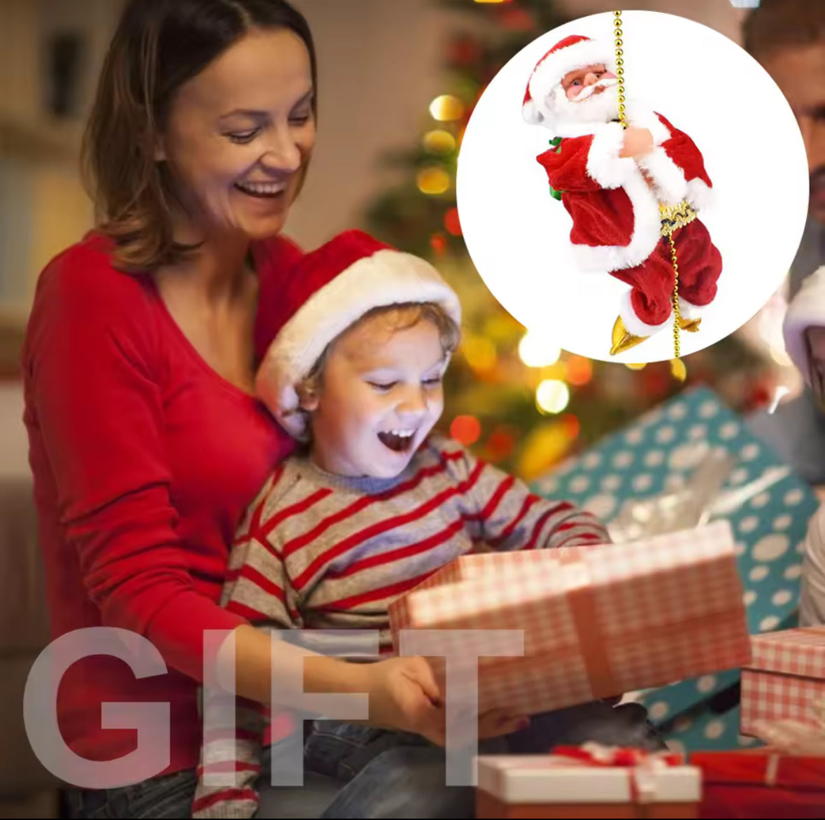 Bring festive cheer to your home with this delightful Climbing Santa ornament! Watch as this battery-operated Santa scales up and down with mesmerizing motion, complete with twinkling lights and cheerful music. Perfect for adding interactive holiday magic to your Christmas tree, shelf, or window display. This charming electric climbing toy captures the playful spirit of the season and makes a wonderful conversation starter during family gatherings. Ideal for creating memorable moments and spreading Christmas joy throughout your home.